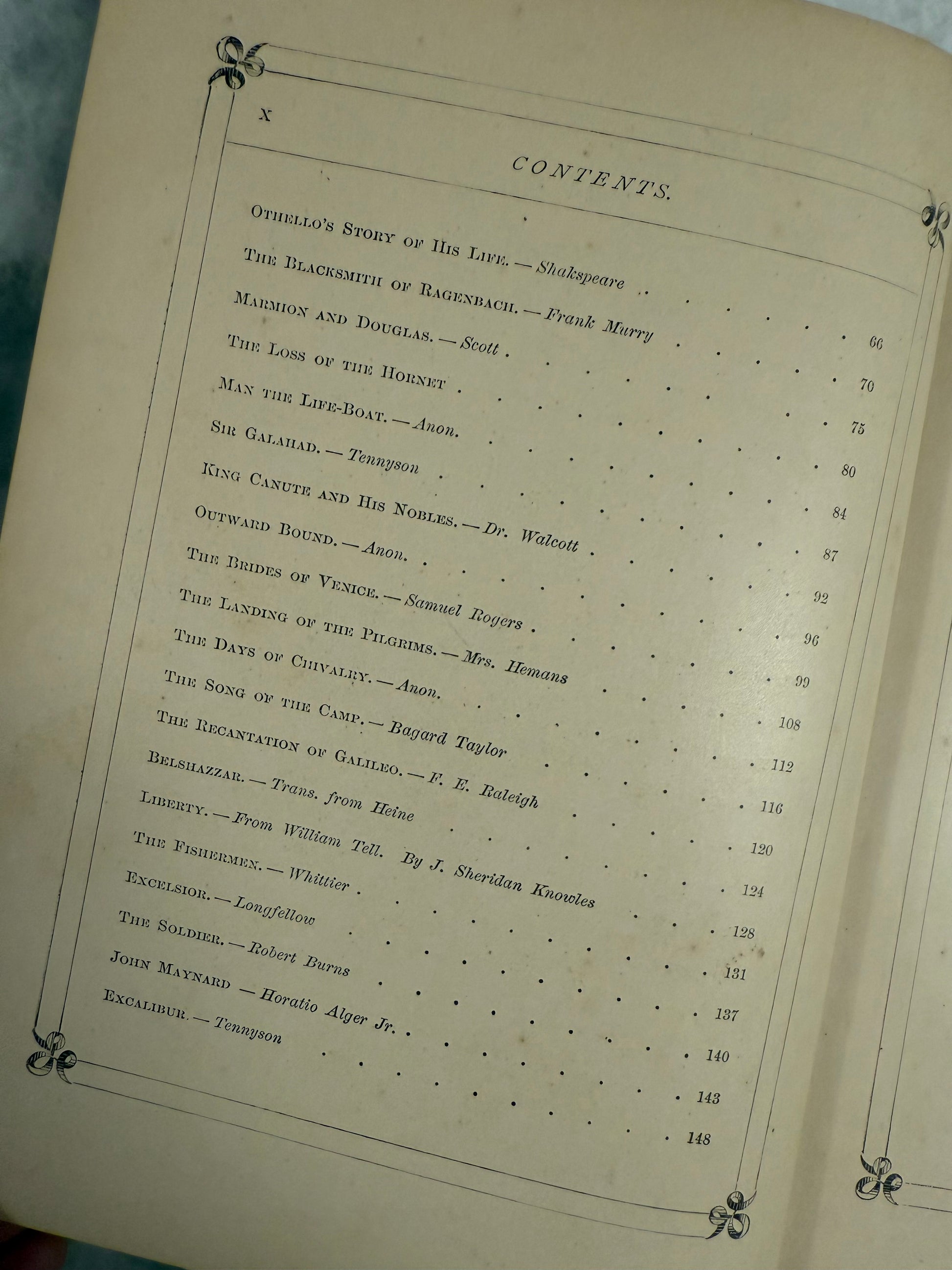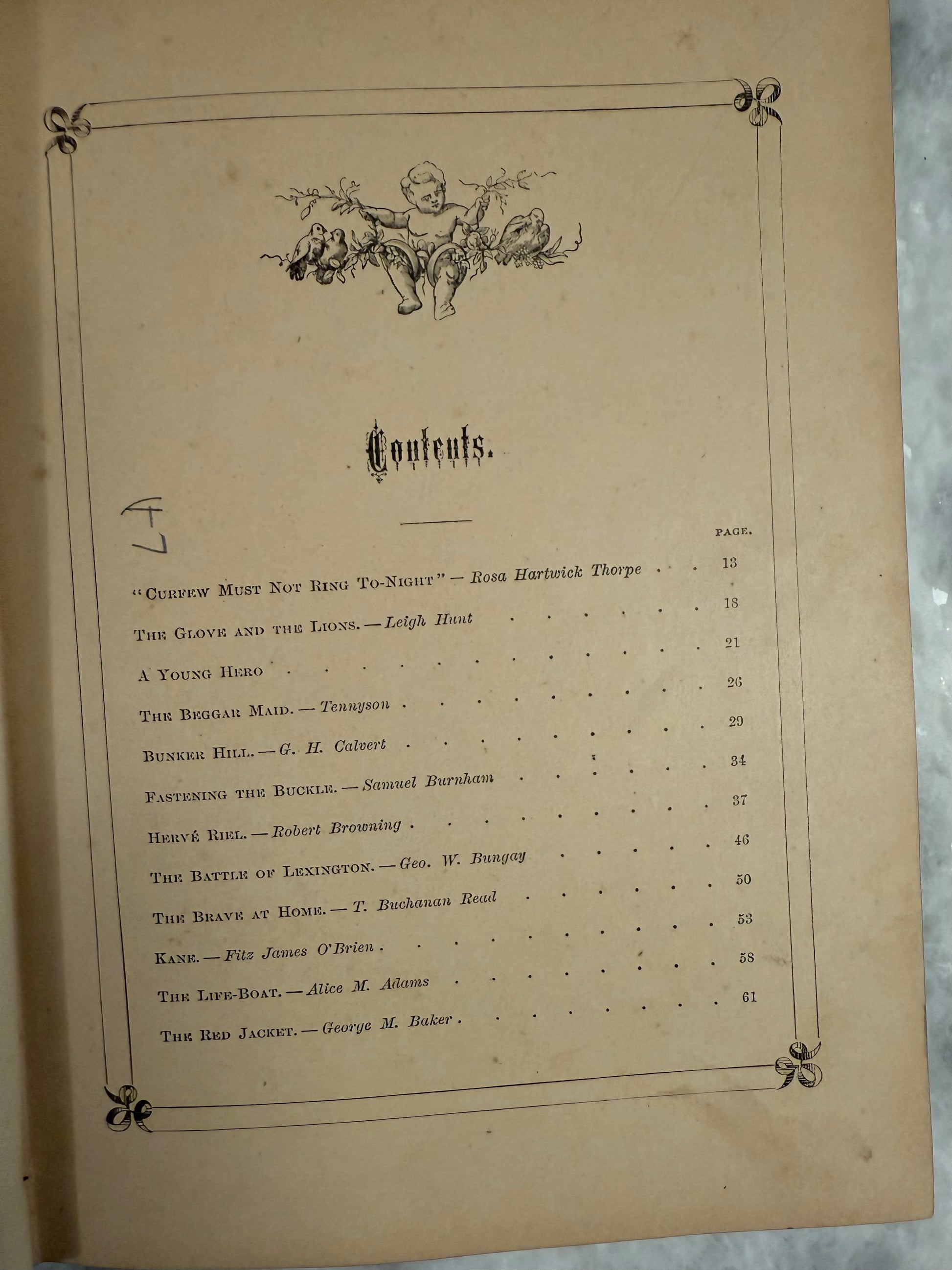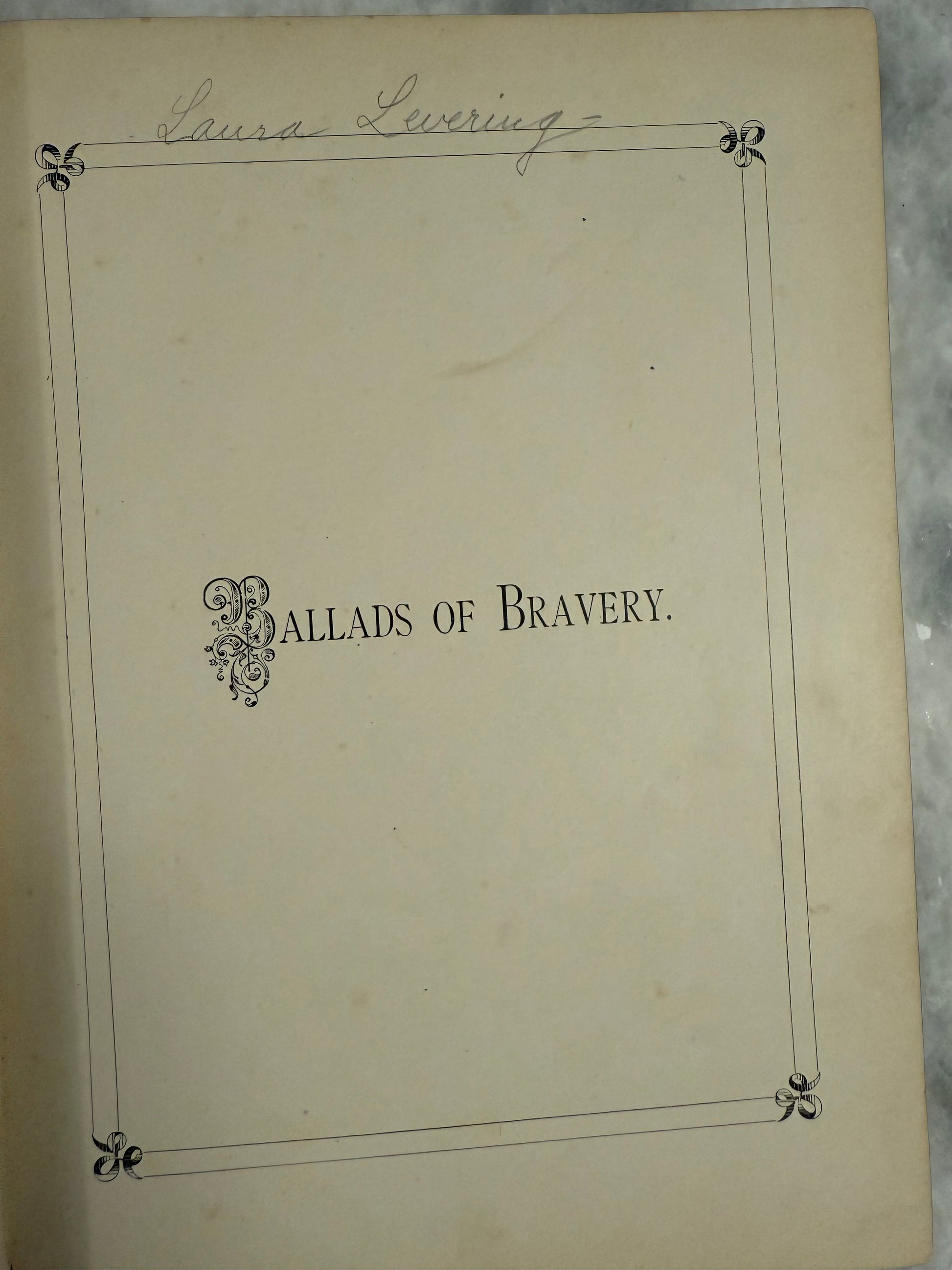 “Ballads of Bravery” was published in Boston by Lee and Shepard in 1877 and includes numerous full-page engravings illustrating the heroic themes of the poems.