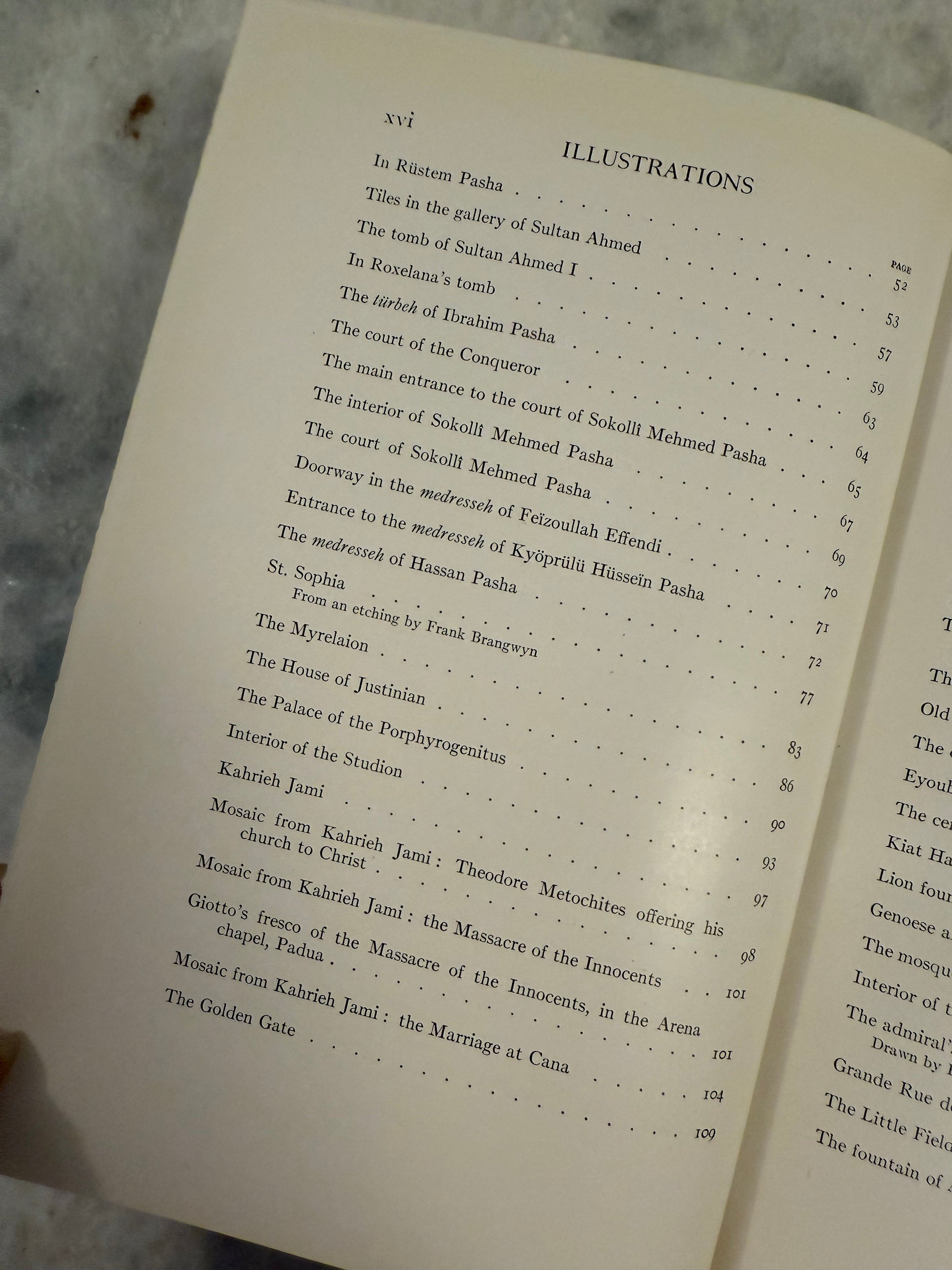 The book is structured into thematic chapters, such as the old districts (Stamboul), mosque yards, the Golden Horn, gardens, holidays, & notable historical moments.