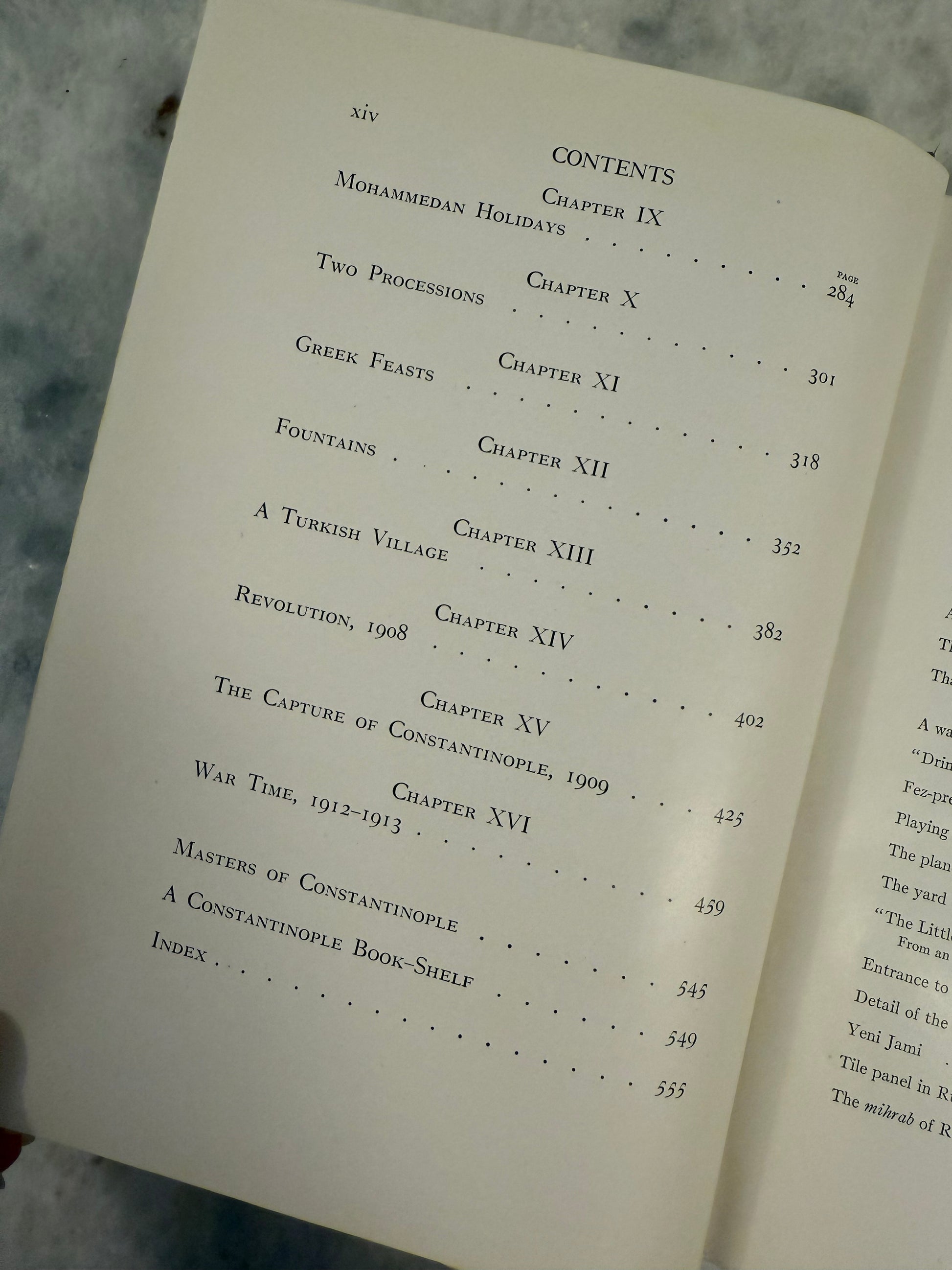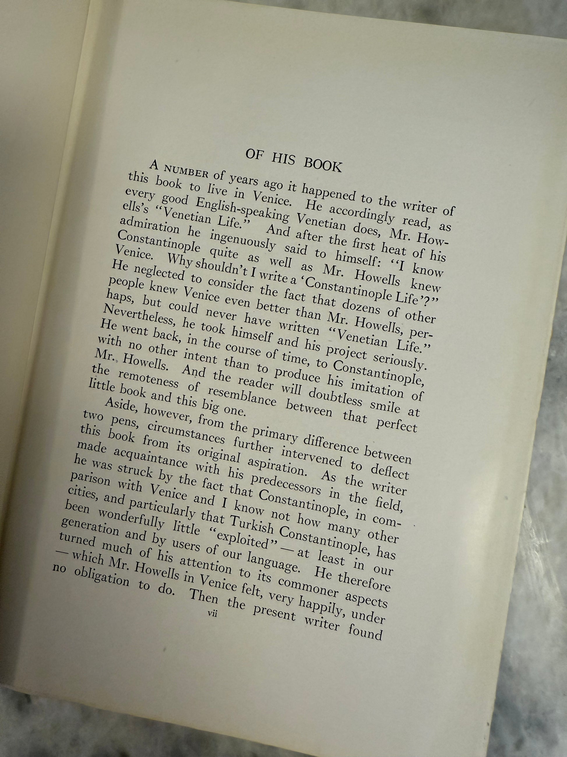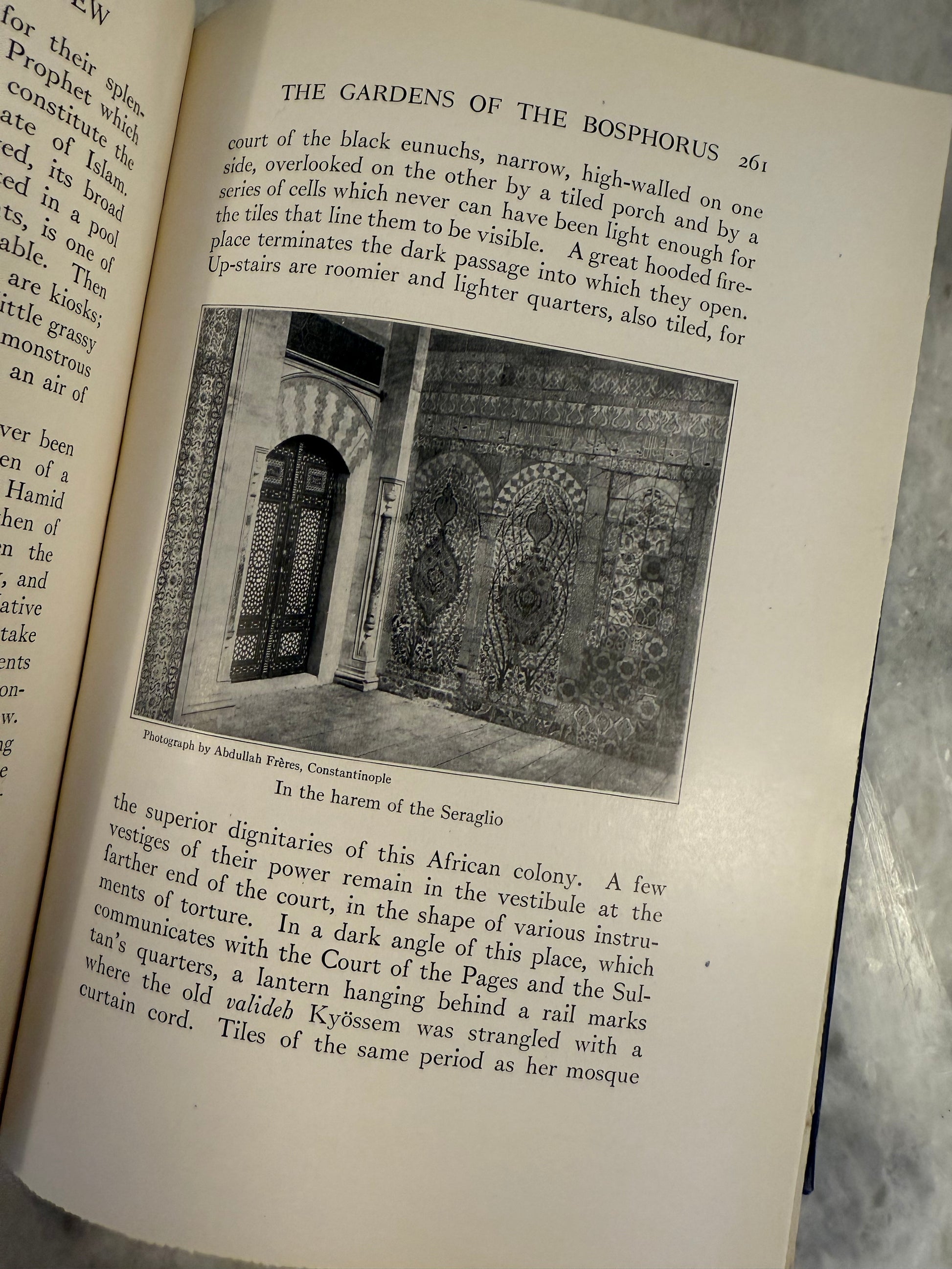 This is a first edition of Constantinople Old and New by H. G. Dwight, published in 1915 by Charles Scribner’s Sons. The book provides a richly detailed & illustrated account of Istanbul (then Constantinople), exploring its architecture, culture, & the interplay between Eastern & Western influences during a period of significant transition. Dwight’s narrative covers both the enduring traditions of the city & the changes brought by modernization & major historical events like the 1908 revolution.
