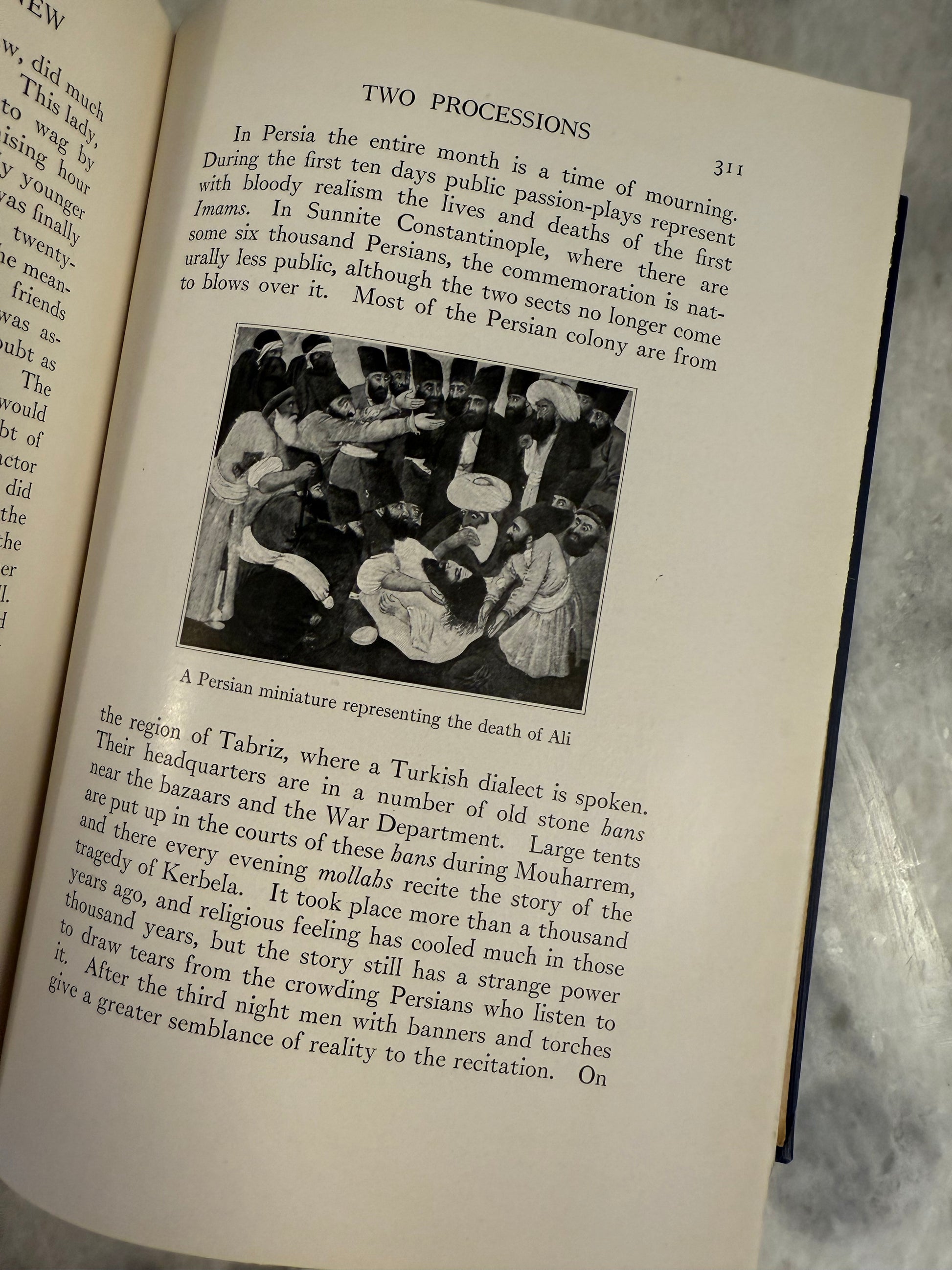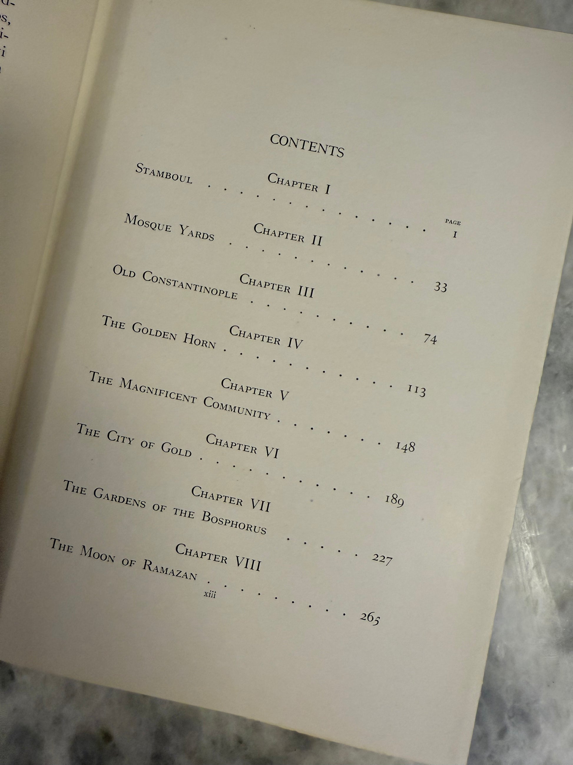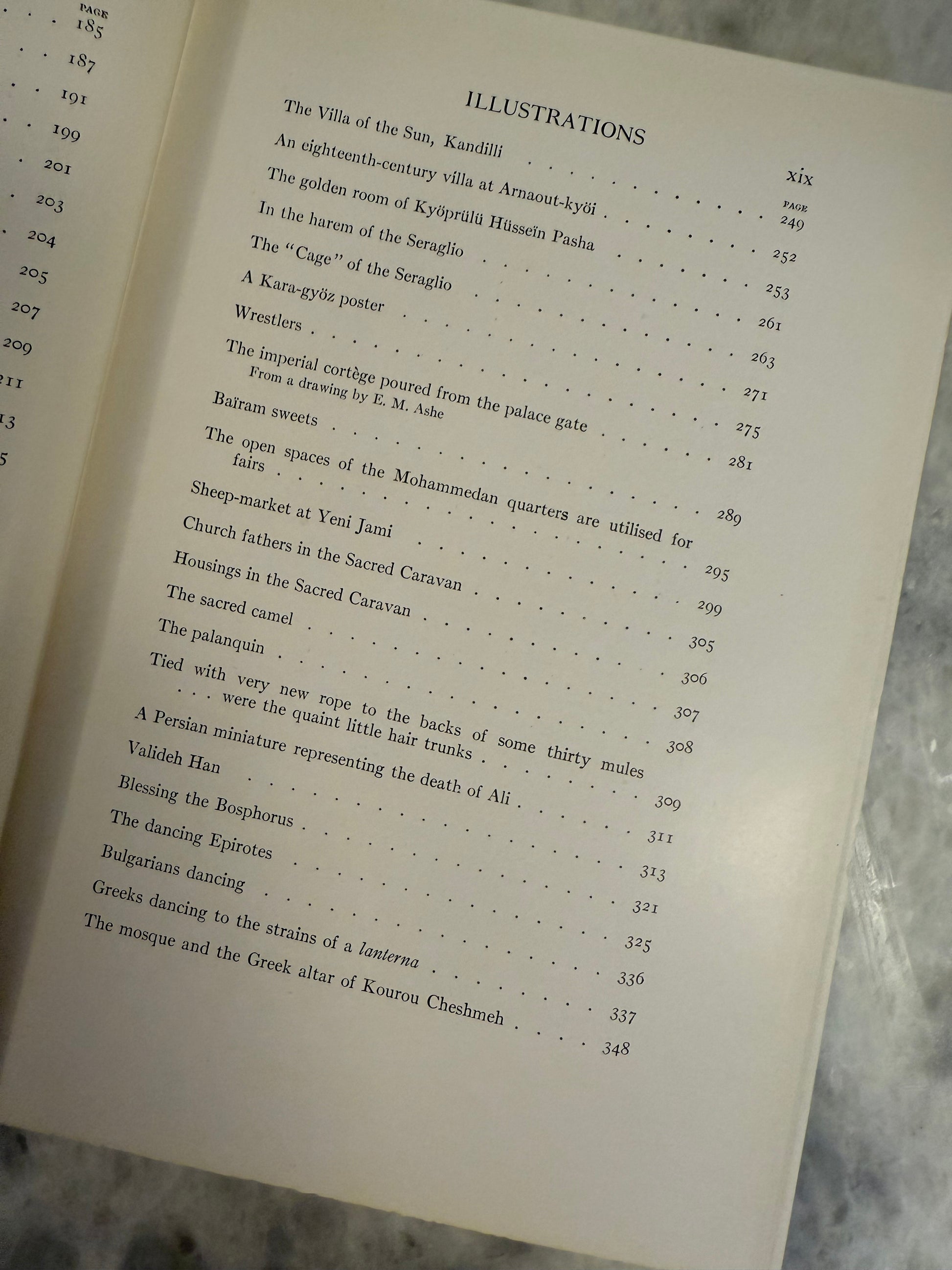 This is a first edition of Constantinople Old and New by H. G. Dwight, published in 1915 by Charles Scribner’s Sons. The book provides a richly detailed & illustrated account of Istanbul (then Constantinople), exploring its architecture, culture, & the interplay between Eastern & Western influences during a period of significant transition. Dwight’s narrative covers both the enduring traditions of the city & the changes brought by modernization & major historical events like the 1908 revolution.