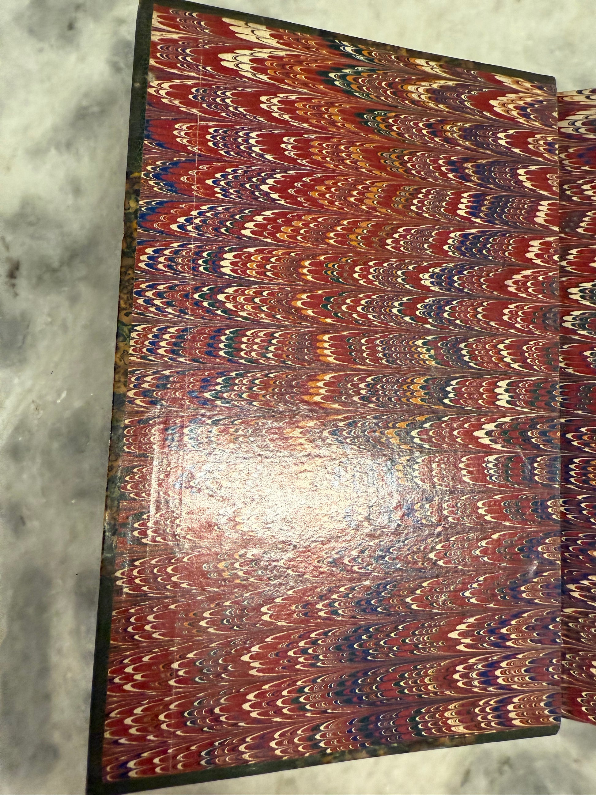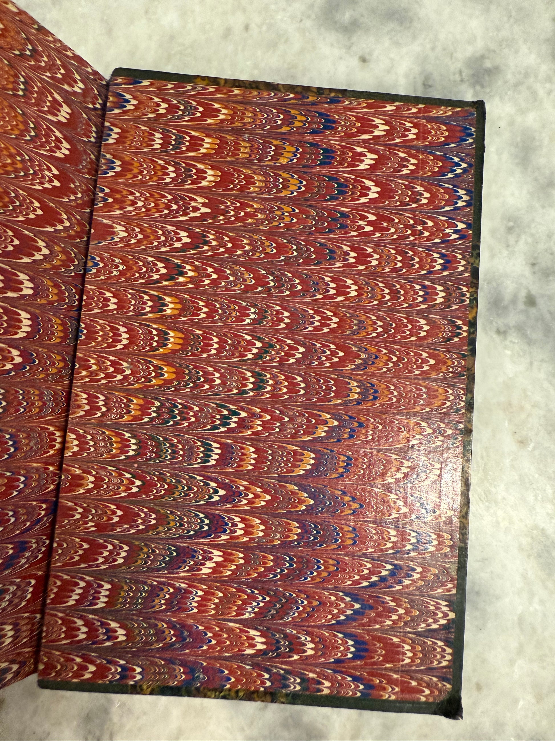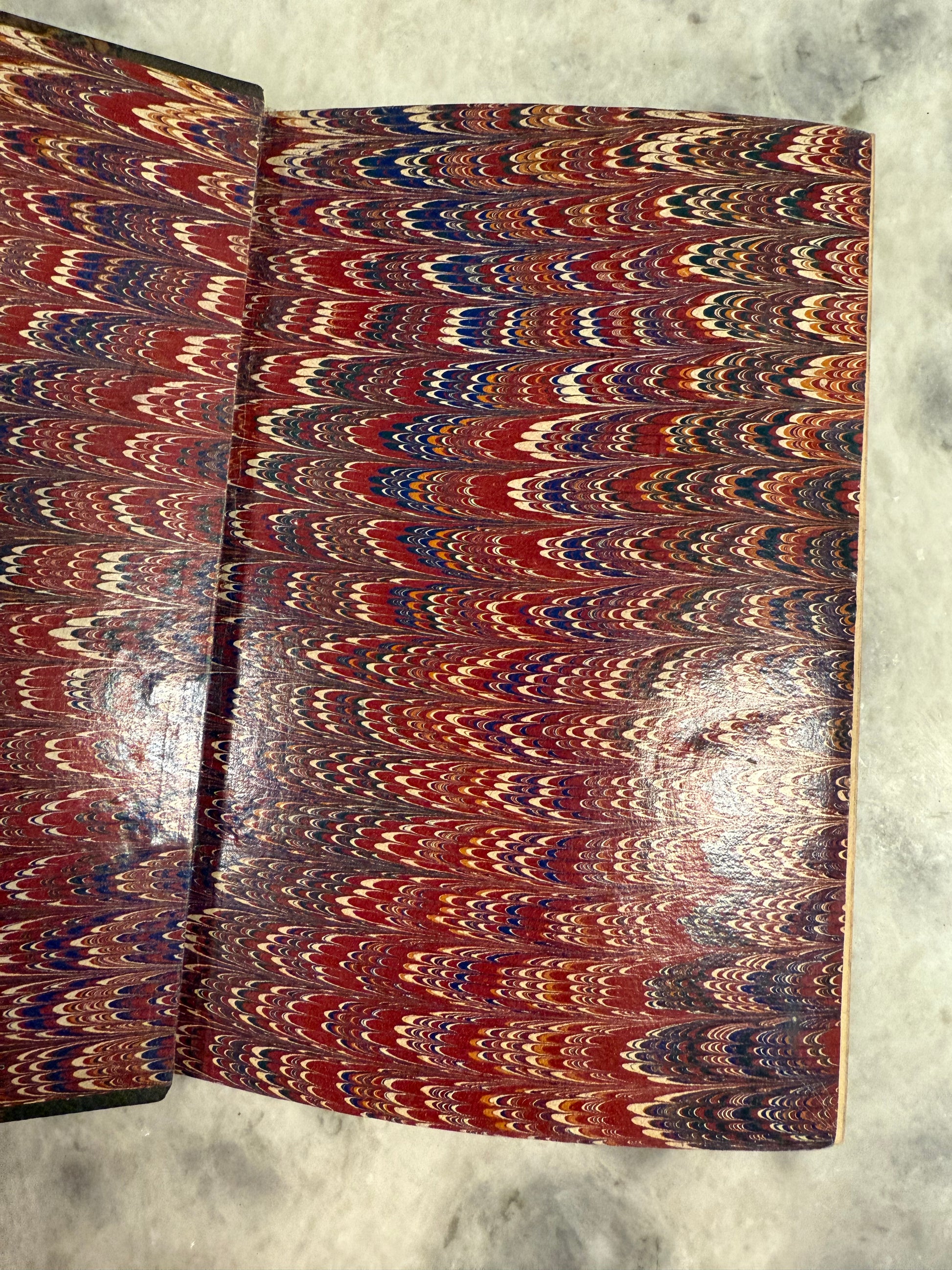 This is a finely bound two-volume 1800 edition of Publius Vergilius Maro’s “Bucolica, Georgica, et Aeneis,” printed in London by T. Bensley for A. Dulau & Co., Soho Square. It features classic Latin texts of Virgil’s works with superb marbled edges and endpapers, engraved illustrations signed F. Bartolozzi, & special provenance from the Craig W. Kallendorf Virgil collection.