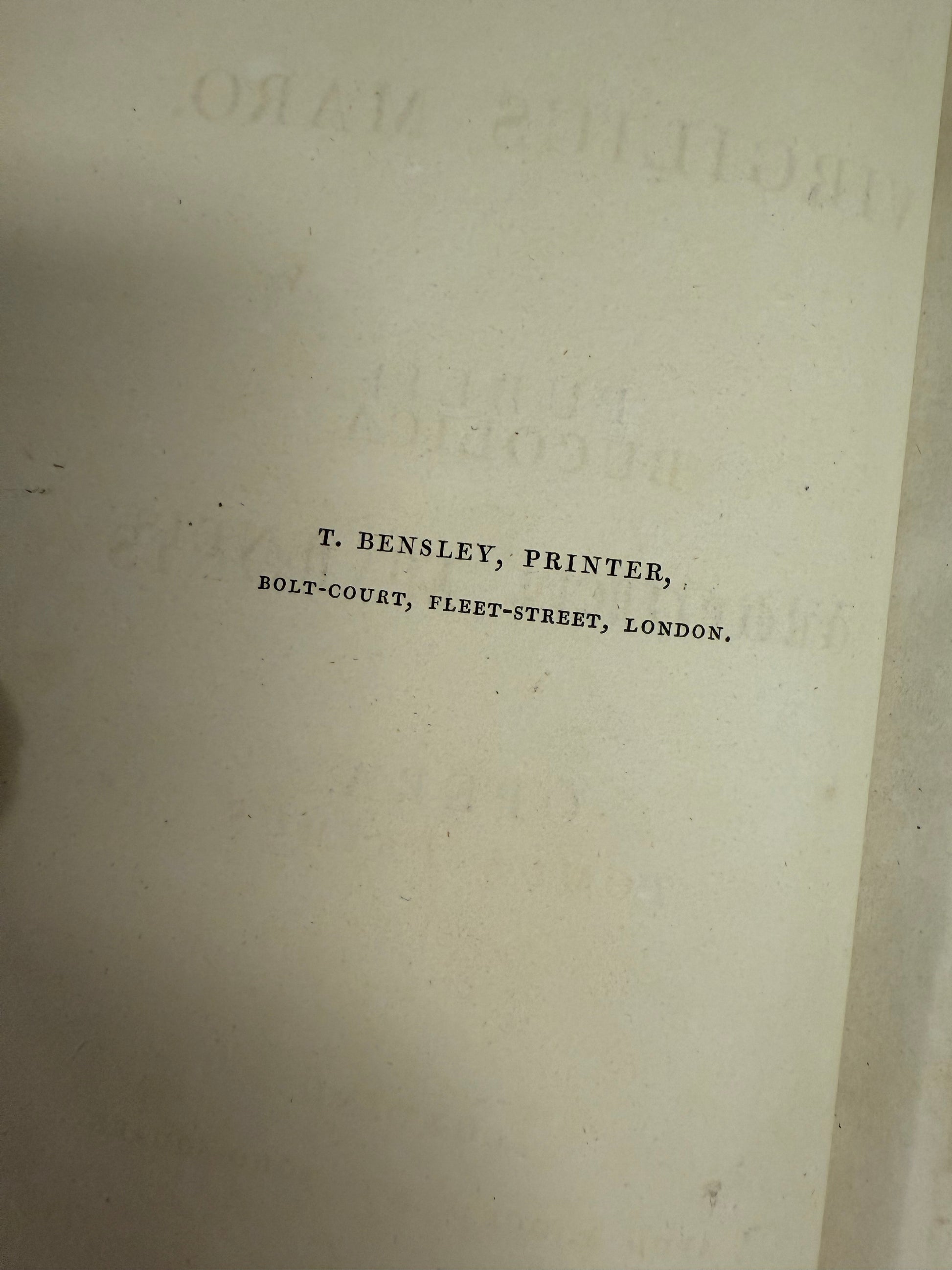 Rare- two-volume 1800 edition of Publius Vergilius Maro’s “Bucolica, Georgica, et Aeneis,” printed in London by T. Bensley for A. Dulau & Co., Soho Square